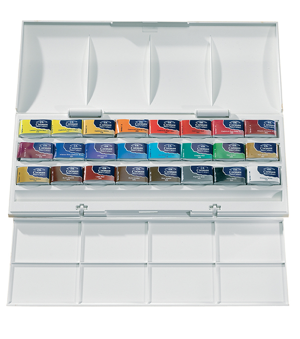 This high quality studio set contains a comprehensive palette of 24 Cotman Water Colour whole pans.