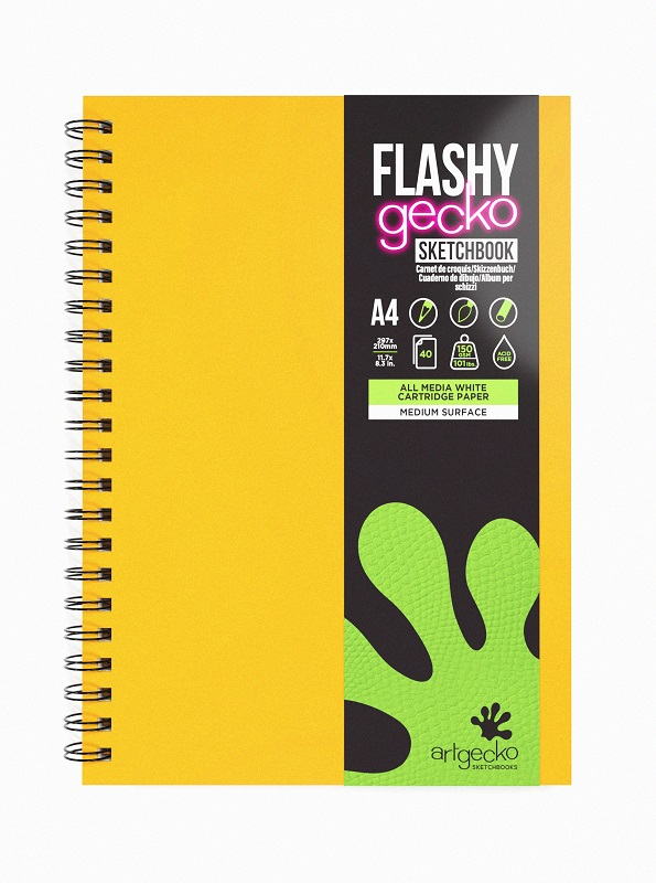 FLASHY A4 SPIRAL YELLOW (NEW) GECKO SKETCHBOOK GEC207