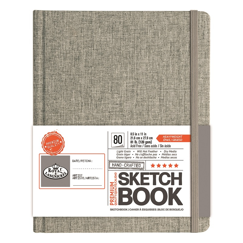 R&L A4 HARDBACK SKETCHBOOK GREY FABRIC 8.5x11 SKTGRY-811