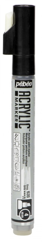 PEBEO ACRYLIC MARKER CHISEL TIP 4mm GREY 201635