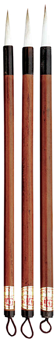 Soft white pony hair for expressive painting. The brushes spring back to shape very quickly and are very absorbent. The belly of the brush is very full and the tip of the brush has a fine point. This gives the best free flowing brush strokes. The thick hair allows the brush to hold the fullest capacity of ink.