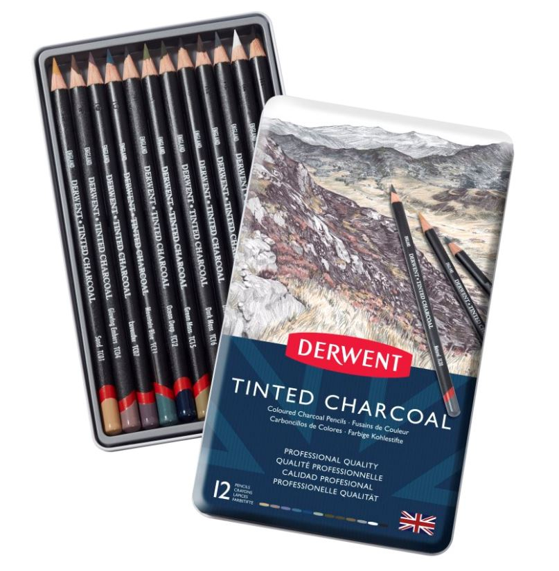 DERWENT TINTED CHARCOAL 12 TIN PENCILS 2301690