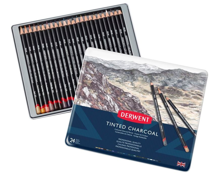 DERWENT TINTED CHARCOAL 24 TIN PENCILS 2301691