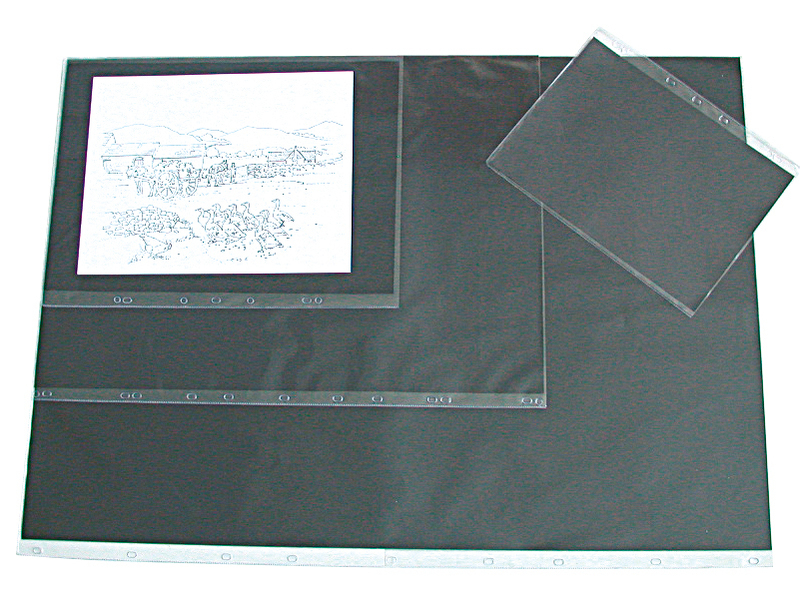 PVC display sleeves with black inserts suitable for almost all portfolios with a ring mechanism.