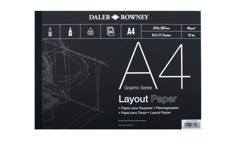 80 sheets 45gsm/31lbs Daler-Rowney layout paper is a crisp lightweight