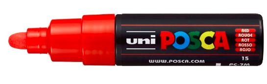 The new POSCA PC-7M, available in fifteen colours, is ideal for drawing, precision artwork, painting, writing and large scale filling and shading.