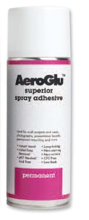 Permanent AeroGlu is ideal for craft projects and cards, photographs, presentation boards, permanent mounting and more. Permanent AeroGlu gives an instant bond, initial easy removal, low soak and is pH neutral/acid free, long lasting, non-staining, non-wrinkle and CFC free