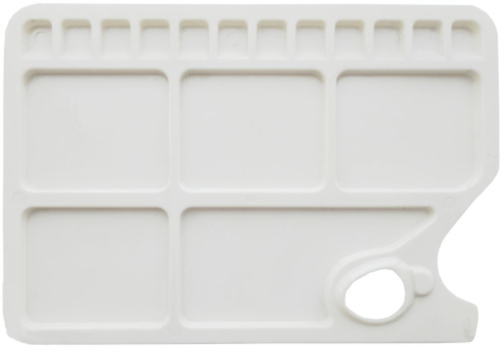 Large plastic rectangular palette with 5 large and 12 small mixing compartments.