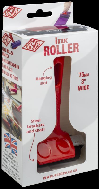 The Essdee Ink Roller is a strong, sturdy and versatile hard-rubber ink roller ideal for printmaking. Features a perfect machineground 70 shore EPDM rubber roller, with an aluminium core, self-lubricating nylon bearings, a continuous steel shaft and rigid steel brackets making this a tough and dependable tool. The unbreakable polypropylene handle features a useful hanging slot and doubles as a stand when turned over for clean working when printing. Can be used with both water and oil-based inks and is strong enough to be used for industrial purposes like the application of window films and vehicle graphics.