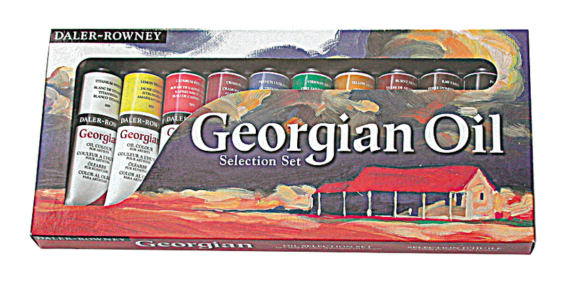 Titanium White, Lemon Yellow, Cadmium Red, Crimson Alizarin, French Ultramarine, VIridian (Hue), Yellow Ochre, Burnt Sienna, Raw Umber and Ivory Black.