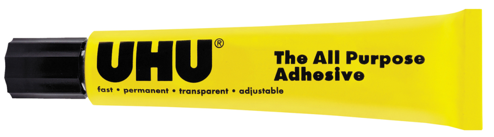 For everyday use all round the house. Dries quickly and holds fast. Sticks wood, china, fabrics, paper, leather, metal and much more. Its adhesive bond remains temporarily correctable and it does not wrinkle paper. The special, soft, pliable plastic tube is clean, non-drip, easy to handle, ergonomic and durable.